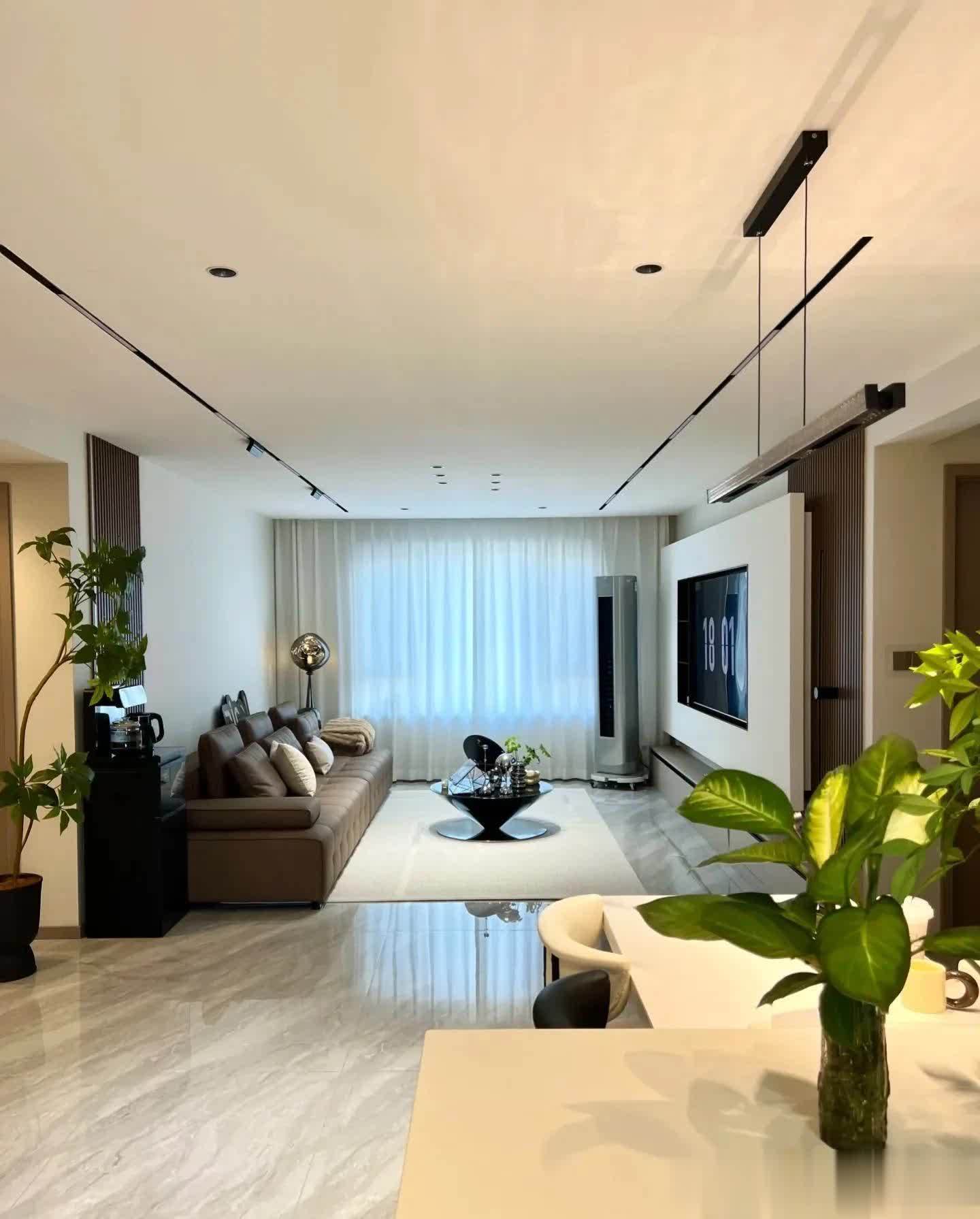客厅区域依然坚持无主灯设计,射灯➕磁吸轨道灯,色温4000k,显得干净又高级。