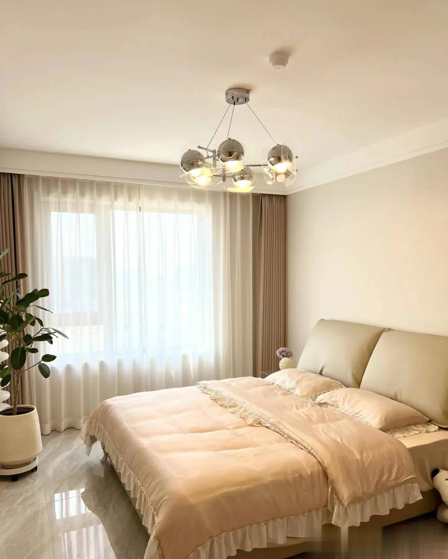 卧室区域牛领策略面积15平米,却十分温馨。吊顶是简单的双眼皮吊顶,还设计了窗帘盒,窗帘是纯色款式,整体温馨又舒服。