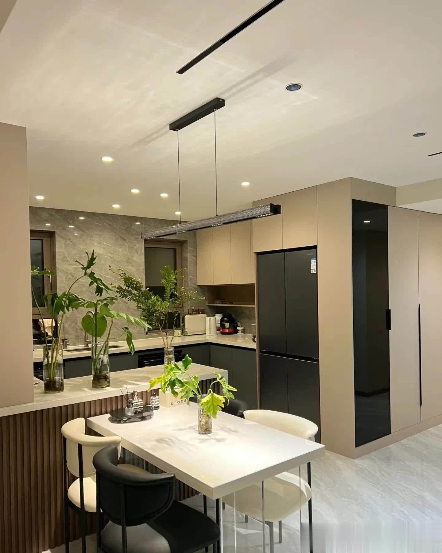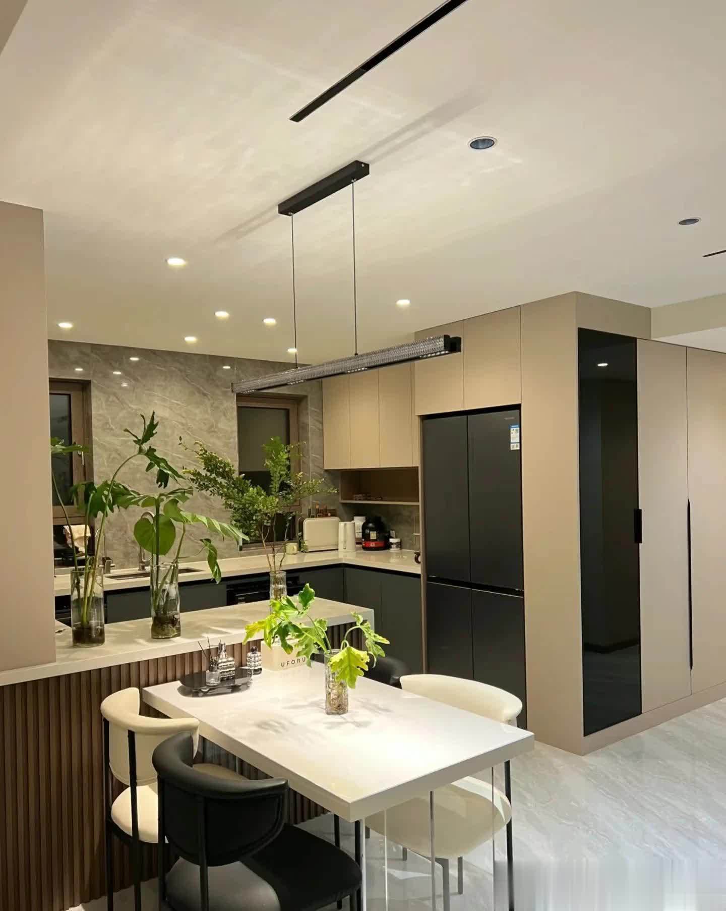 餐厅岛台➕岩板定制,整体简单舒服,吊灯选的是这种简洁的款式。