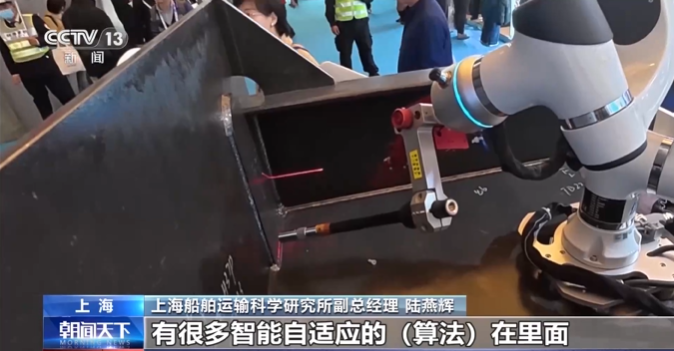 上海船舶运输科学研究所副总经理 陆燕辉:它是我们国家在造船领域里面用便携式焊接机器人应用到工业领域的第一台。它通过激光辨识以后直接成像,然后跟后台的数据结合在一起,进行焊接,有很多智能自适应的算法在里面。
