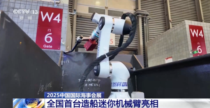 一款正在展会现场“跳舞”的迷你机械臂,是一款已经投入使用的船舶建造焊接设备,看似在“跳舞”,实际上是为了向观众展示它灵巧的焊接技术。